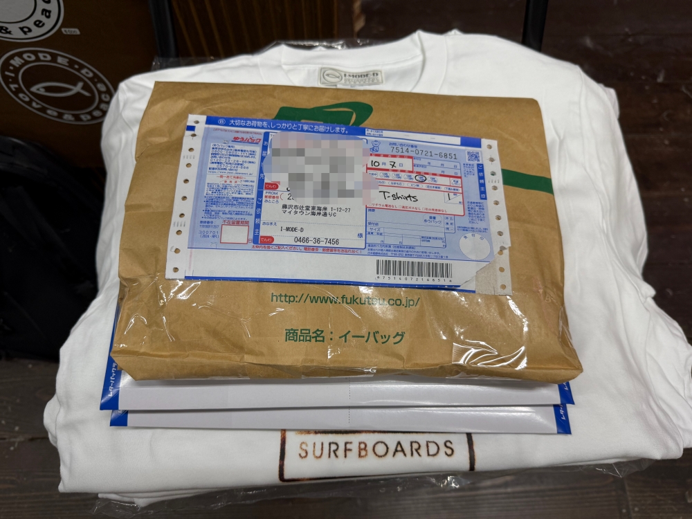 今日から T シャツの発送を始めました。 今日は4個です。