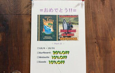土日がお休みのサラリーマンの皆様へ 滅多にない大変貴重なビッグチャンス!がもうすぐ終了します! サラリーマンの皆様には、次の土日 ( 10/25-10/26 ) が最後のラストチャンス!でございます。 そして平日お休みの皆様、今月末 ( 10/31 ) が最後でございます。 (例) 〜 6.2 / ¥133.000 → ¥106.400、6.3 〜 6.11 / ¥142.000 → ¥113.600、ウェットスーツは 10%OFF。 どうぞ後で後悔なさることのないようにお願い申し上げます。