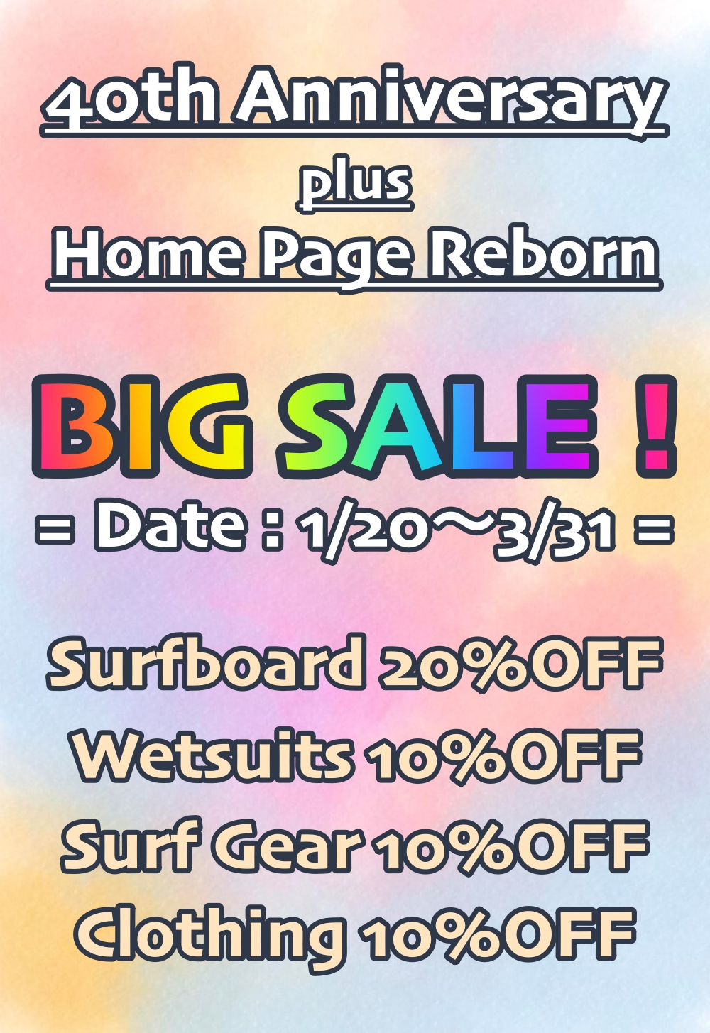 「 40th Anniversary + Home Page Reborn ! 」を祝って BIG SALE ! を開催します。