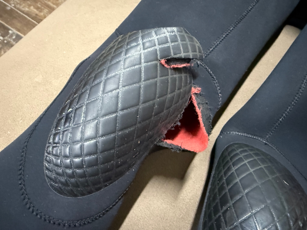 ウェットスーツの膝パッドが大破!、体はどうなった?