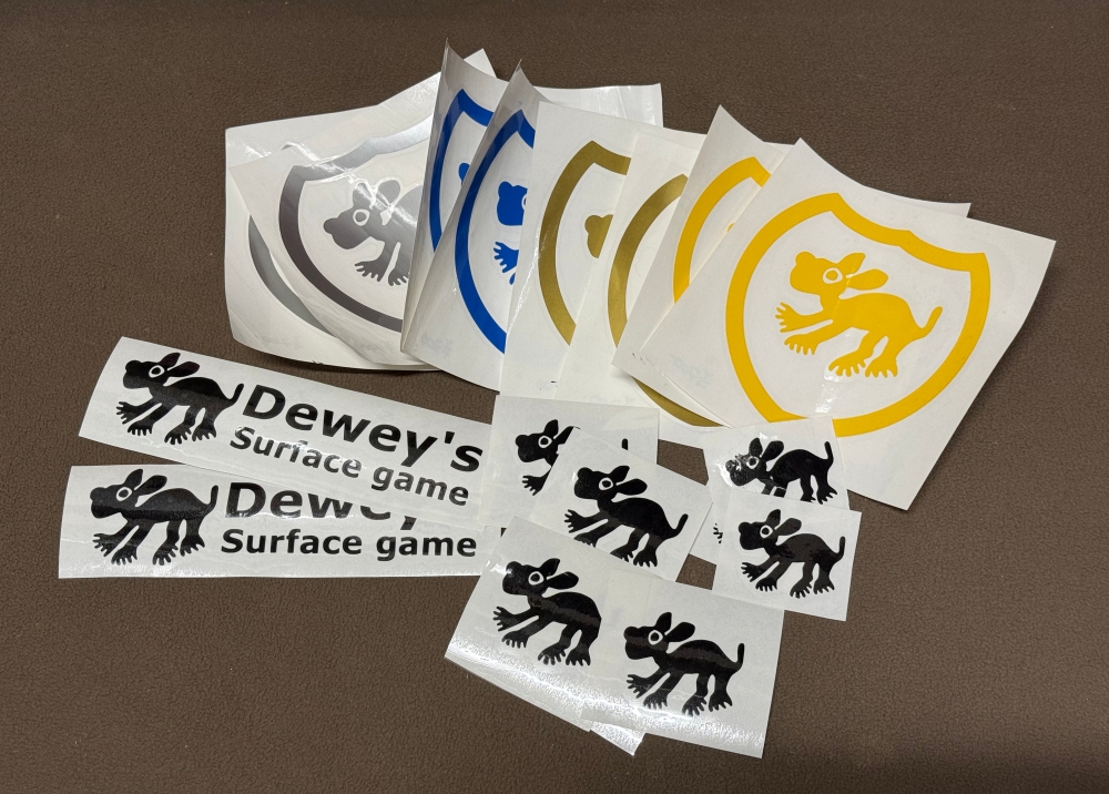昨日から Dewey’s Surface Game wetsuits として初めて作ったステッカーを、