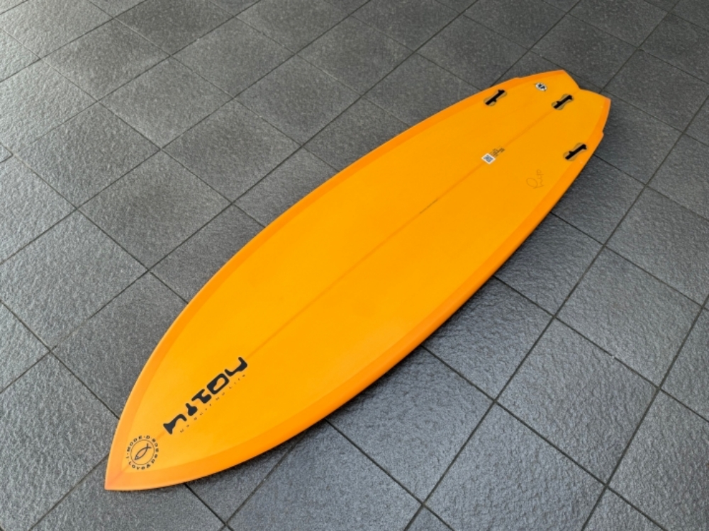『 70 PLUS は、これまでの hitoy shape のサーフボードとはまったく異なったコンセプトでデザインしたオールドファッションスタイルのツインフィン。』