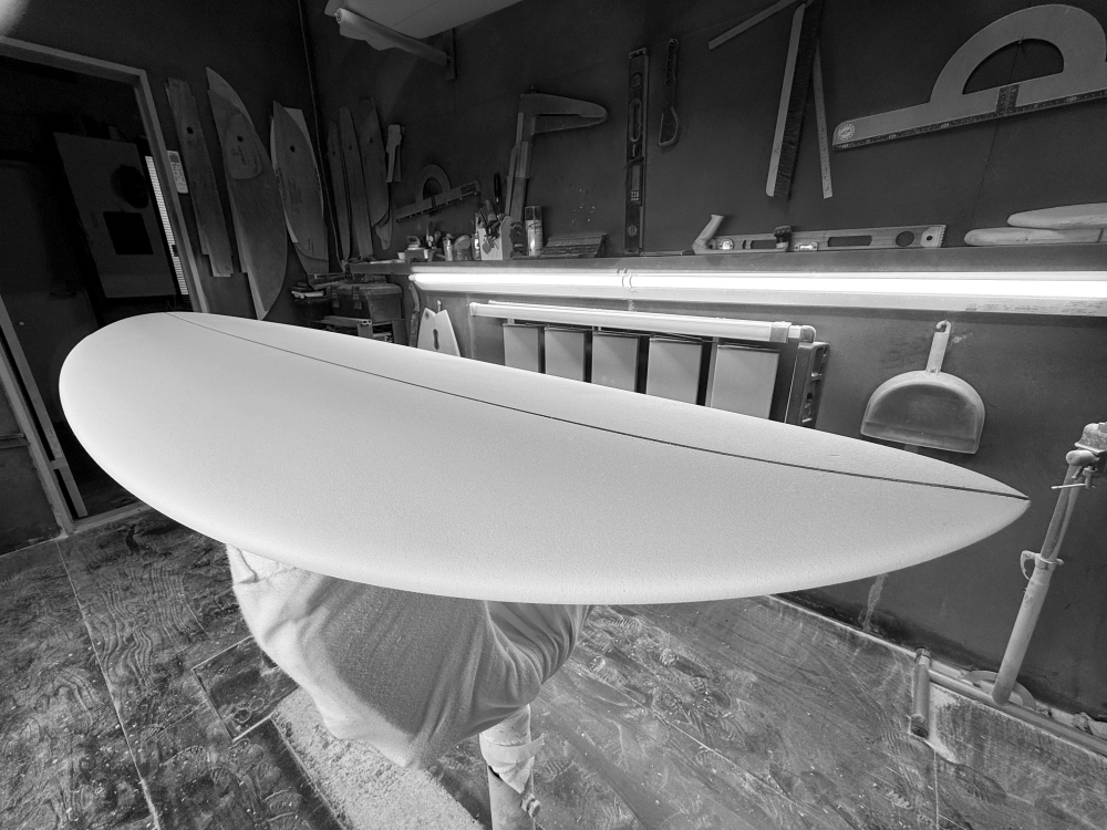 パドリングスピードやテイクオフに影響がないように調整を加えながら、