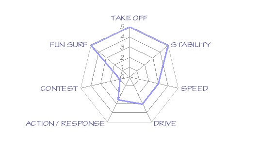 ベーシックでトータルバランスに優れたデザインの " Jigen " は、誰にでも扱いやすく、膝サイズの小波からオーバーヘッドの波までオールラウンダー/ミッドレングスとしてクルージングサーフィンを楽しむことができます。